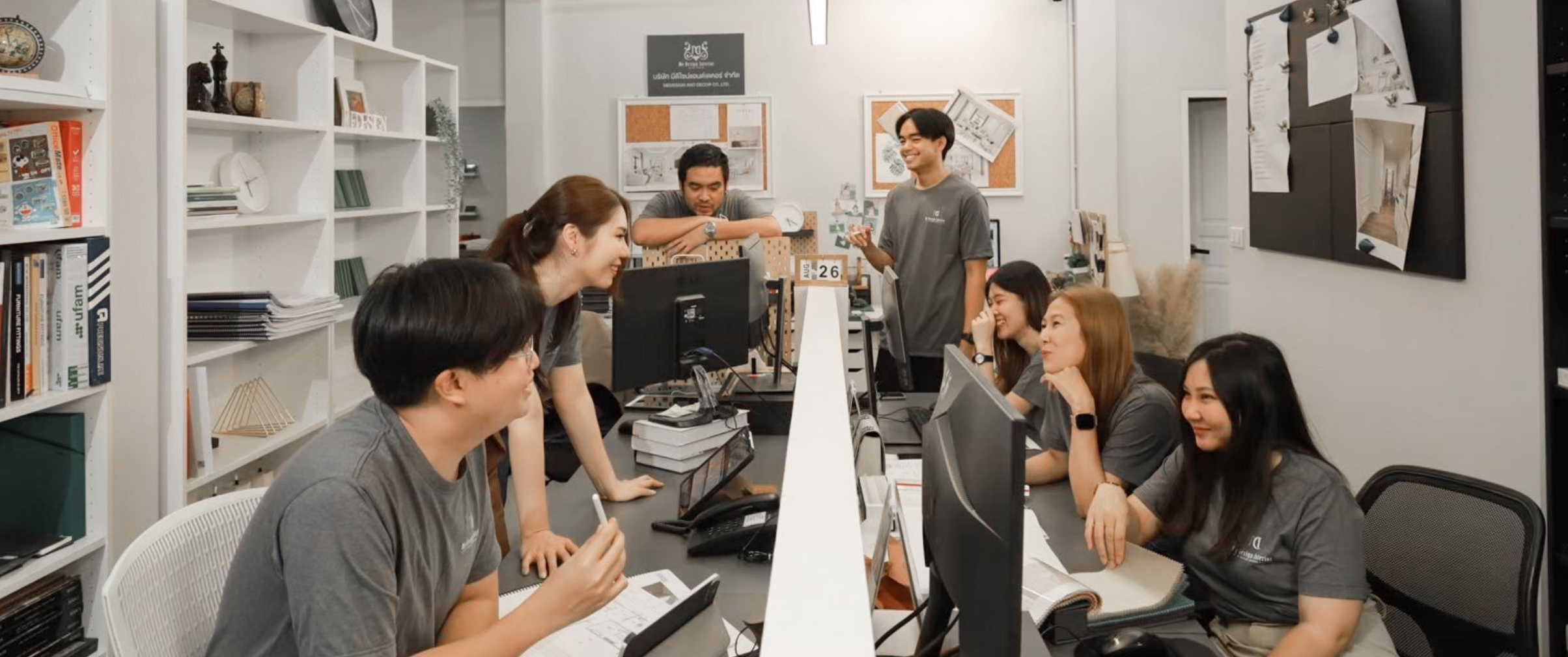 การรวมตัวกันของนักออกแบบ ที่มีประสบการณ์และเรียนจบตรงสาขาออกแบบภายใน เราเป็นสตูดิโอๆ ที่เริ่มจากการได้รับโอกาสและความไว้วางใจจากลูกค้าหลายต่อหลายท่าน จนกระทั่งมีดีไซน์สามารถขยายทีมออกแบบพร้อมทีมรับเหมาตกแต่งภายในได้ครบวงจรกว่า 10 ปี ในการทำงาน เราทั้งได้ทำงานและเรียนรู้ตลอดเส้นทาง จนถึงวันนี้เรามีทีมงานและพันธมิตรในวงการงานตกแต่งภายในที่พร้อมจะดูแลและพัฒนาบริการให้ดียิ่งขึ้น